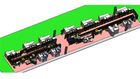 • 長(zhǎng)齡液壓回轉(zhuǎn)體回轉(zhuǎn)軸柔性生產(chǎn)線,規(guī)劃加工兩種體、軸,將客戶的生產(chǎn)工序進(jìn)行壓縮。